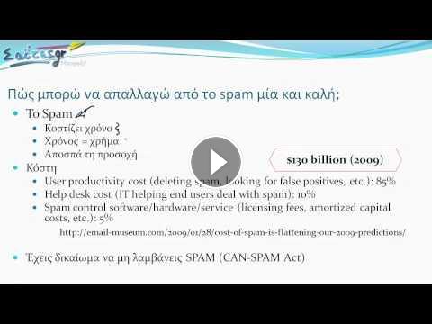 Το δεύτερο μέρος: http://goo.gl/gFCaG. Σε αυτό το video βλέπουμε 4 εξαιρετικά αποτελεσματικούς τρόπους να αντιμετωπίσουμε το spam μία και καλή.