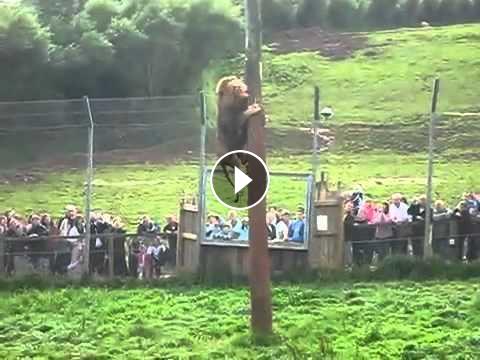 LEON ATACANDO SU PRESA SE TREPA A UN POSTE