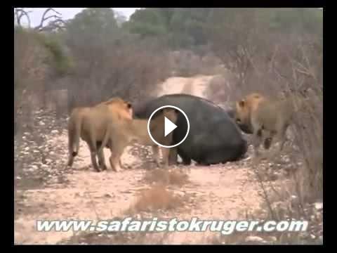 LEONES COMEN VIVO A UN HIPOPOTAMO