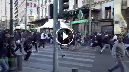 Οπαδοί της ομάδας του ΠΑΟΚ που είχαν σκοπό να φτάσουν στη Νέα Σμύρνη για τον αγώνα με τον Πανιώνιο συναντήθηκαν στο κέντρο της Αθήνας με εκατοντάδες λαθρομετανάστες από το Πακιστάν που πραγματοποιούσαν πορεία για τα γενέθλια του Μωάμεθ.