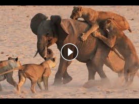 Young elephant survives attack by 14 Lions