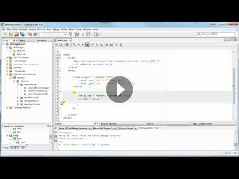 Από το http://saites.gr. Κατέβασε τον κώδικα: http://ht.ly/3Yas9. Βλέπουμε πώς μπορούμε να χρησιμοποιήσουμε το NetBeans και την JSP για να καταναλώσουμε SOAP Web Services και να βλέπουμε τον καιρό όταν μας δίνεται ο ταχυδρομικός κώδικας με μία φόρμα.