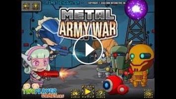 The dark robotic kingdom wants to take over Earth and turn it into a metal robot planet. Stand up to them alone or with a friend and take back the planet! Destroy traps, take down enemies and rescue hostages. You can upgrade your weapons and health bar with the metallic materials you collect in the levels.