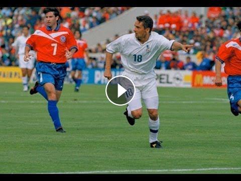 Roberto Baggio penalty kick against Chile after his penalty against Brazil in 1994. He became first player from Italy who scored at three World Cups