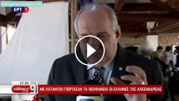 Απόσπασμα από το δελτίο ειδήσεων της ΕΡΤ1 με θέμα τον εορτασμό των Θεοφανίων με τους Έλληνες πιστούς στην Αλεξάνδρεια.